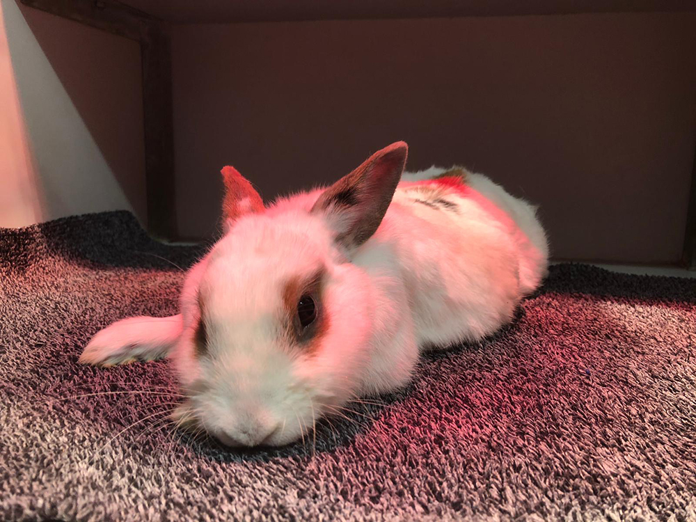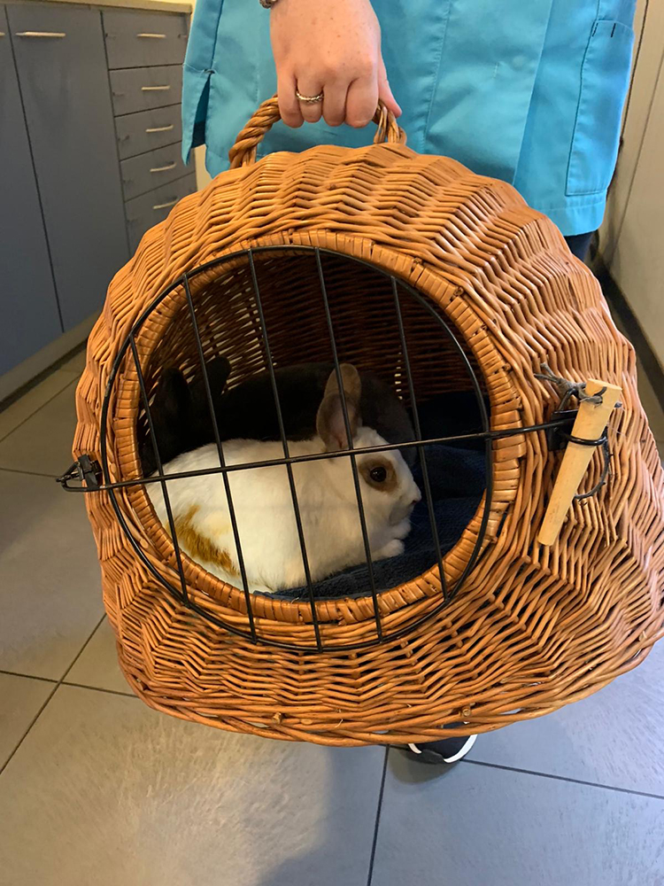 Bij binnenkomst controleren we het konijn: we meten de temperatuur, luisteren naar het hart en de longen en voelen of er geen aanwijzingen zijn voor problemen in de buik.
